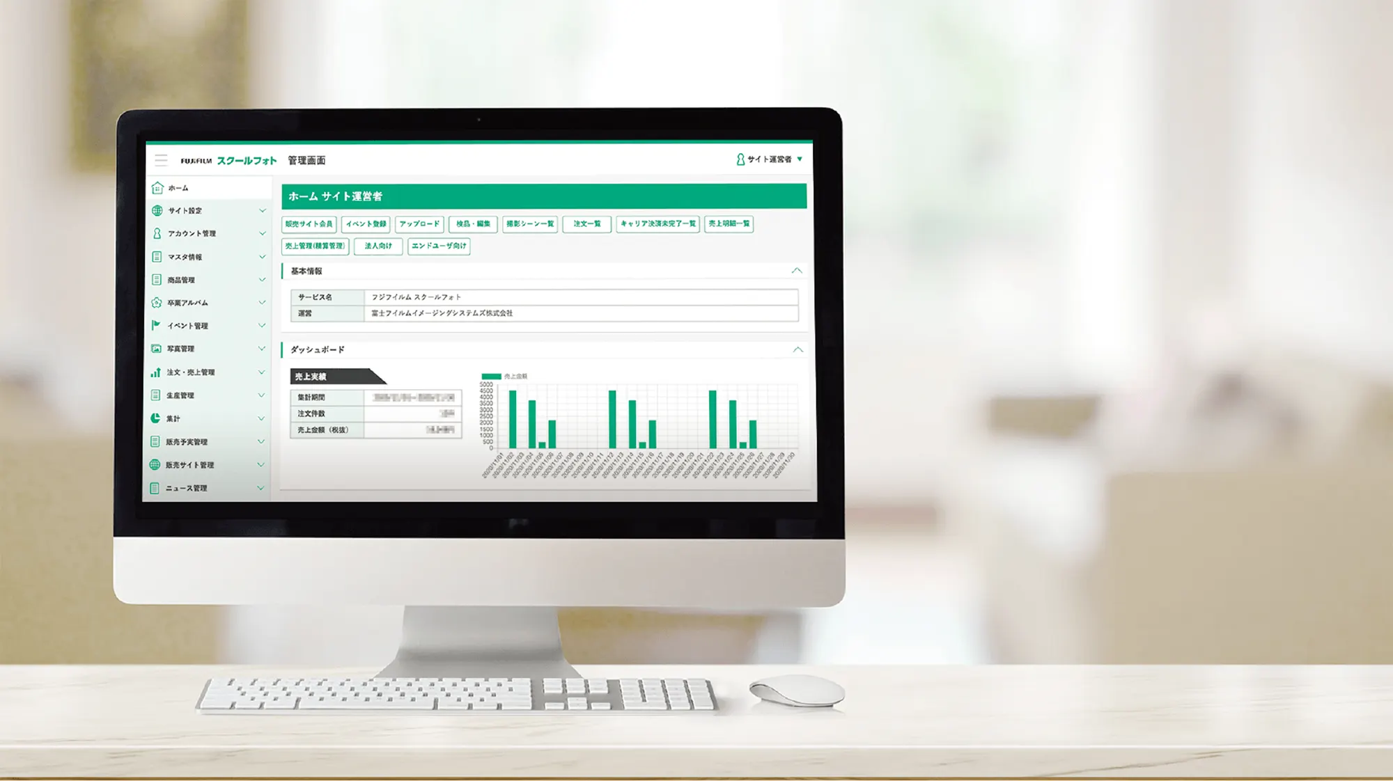 富士フイルムスクールフォトでは、全ての操作をインターネット上にある管理画面を通して行うことが可能です。自身で簡単に販売・休止の操作が行えるので、販売のチャンスを逃しません。